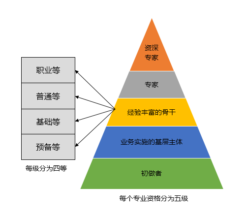 华为任职资格管理体系属于行业标杆,值得深入研究和借鉴。首先划分岗位序列,包括技术任职资格、营销任职资格、专业任职资格和管理任职资格。共分为六级,每级又分为四等,即:职业等、普通等、基础等、预备等,并形成了详细的任职资格标准体系。
