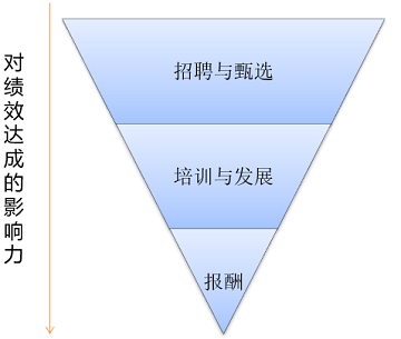 在人才管理体系中,不同模块对人才绩效产生的影响程度不同,其中,选人具有最大的影响力和潜力,第二才是培训与发展,排在最后的则是绩效管理与激励报酬体系。在这方面我很喜欢一句话:“你可以训练火鸡爬树,但我宁可雇用松鼠。”