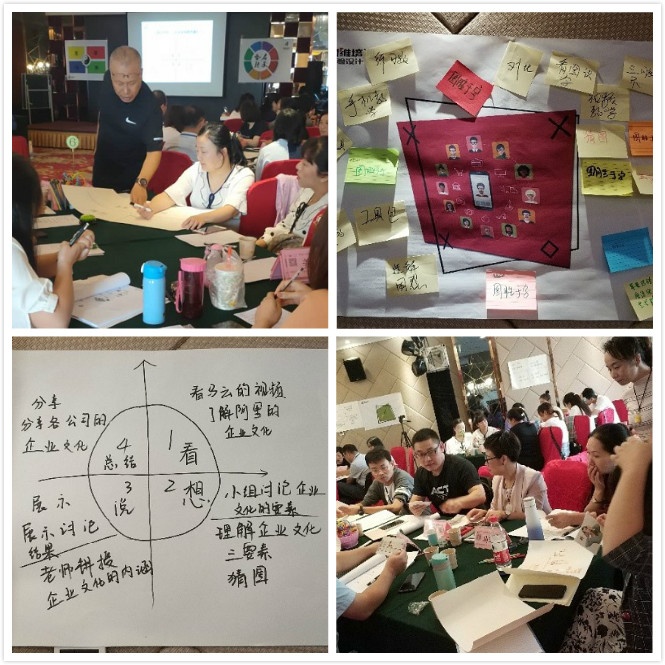 第二天:施晓林老师主讲的《文化传播——四维训练工具》,互动体验式教学,体验并学会基于“启承转合”四维模型的交互式企业文化传播,根据企业文化内容匹配合适的传播活动,授课方式丰富、生动有趣。