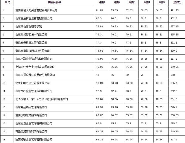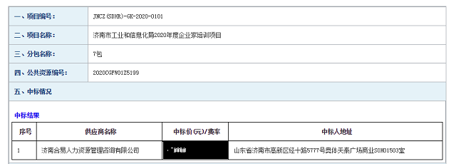 2020年10月30日济南市工业和信息化局组织2020年度企业家培训项目公开招标活动,设有评标委员会成员5名,分别对投标成员进行综合打分,参与此次投标的有33家咨询公司,合易咨询以绝对优势中标济南市工信局企业家培训项目,投标六包,五包第一,一包第二,因最多中标一包,选择七包人力资源管理方向。此项目包含三个培训班,需在11月底完成实施。