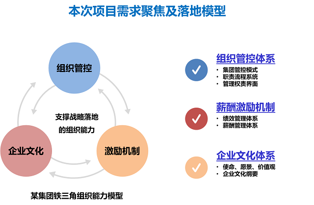 项目启动会上,合易咨询项目负责人张经理向大家讲解本期项目的设计思路及预期效果。项目设计主要围绕人力资源管理展开,合易咨询为该集团量身定制“铁三角组织能力模型”,搭建“组织管控体系+薪酬激励机制+企业文化体系”,聚焦支撑战略落地的组织能力建设。