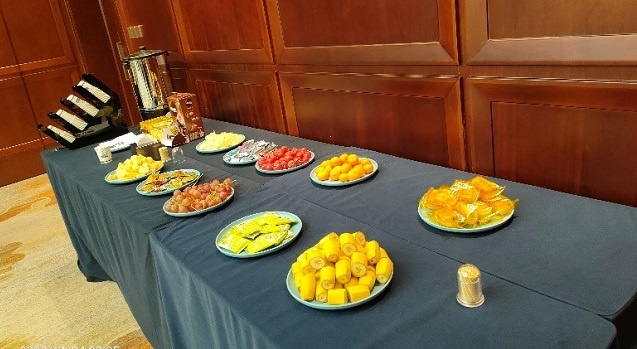 承办单位济南合易咨询机构为企业家们合理安排自助午餐,歇息时间安排了多种水果、糕点、咖啡以供大家及时补充能量,调整听课状态,确保参会企业家足不出楼就得以解决食宿问题。