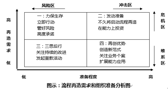 冲击区:第二象限和第四象限属于这个区域,处在这个区域的流程适合进行流程再造工程。