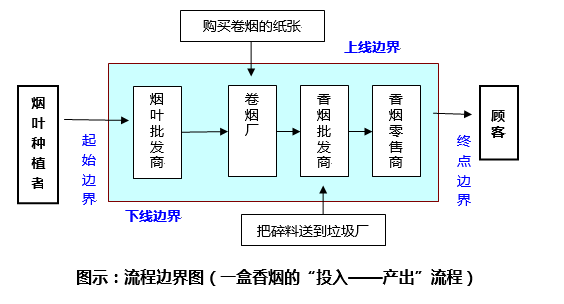 在识别完企业流程后,应当确定企业流程的边界。大多数流程的始点与终点都没有准确的界定,一些人可能从一个相对狭窄的范围来考虑流程,另一些人则可能从一个更为广阔的范围来考虑流程。对于流程再造负责人员,必须明确流程的边界,这样才能明确任务范围,从而目的明确地展开工作。