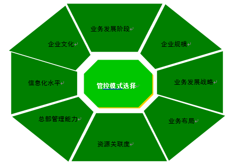 以上是单体企业在集团化进程中所遇到的最为普遍的问题。管控模式一般涉及财务管控、战略管控、操作管控三种形式。不同的管控模式代表了集团公司的集分权程度。企业集团应该选择什么样的集分权管控模式,一般来说,可以从企业的业务发展阶段、企业规模、业务发展战略、业务布局、资源关联度、集团总部的管理能力、信息化水平、企业文化及其他因素来综合分析。其中,每一种因素都将对企业集团集分权方式的选择产生影响。